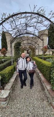 Dopo il tour, potrai accomodarti per degustare 3 vini - Chianti Classico, Chianti Classico Riserva e Gran Selezione - accompagnati da un primo piatto tipico toscano e un tagliere con una selezione di salumi senesi e bruschette con olio d'oliva di produzione propria. Il Castello di Meleto offre anche l'opportunità di arricchire la tua esperienza di degustazione con l'aggiunta di una degustazione guidata di Vin Santo e formaggi tipici.